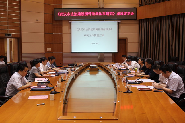 9月8日下午,公司法治城市研究中心郑全新教授主持的武汉市委法治办委托项目“武汉市法治建设测评指标体系研究”在会议中心思齐厅接受校外专家对课题成果的鉴定。评审专家组由省人大法制委员会副主任张绍明、武汉大学太阳集团tyc33455林莉红教授、武汉理工大学文太阳集团tyc33455经理李牧教授、中南财经政法大学张红教授、武汉市法学会副会长周玉、武汉市委法治办副主任范礼奎组成。