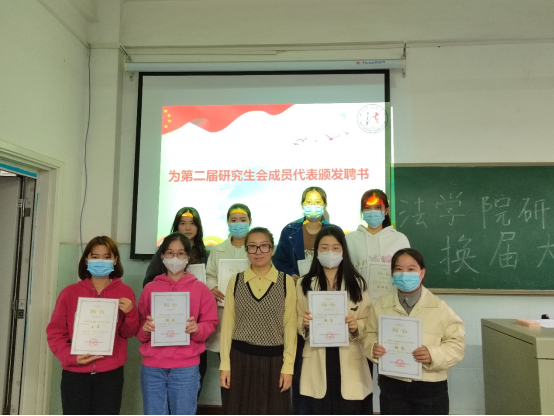 大会第四项由黄程领誓,第三届研究生会全体成员完成入职宣誓。宣誓过程中,法研会第三届全体成员高举右手,庄严承诺道:以推进院校发展为己任,全心全意为同学服务。这一句句掷地有声的承诺,不仅是落于心底的约束,更是践于行动的决心。路漫漫其修远兮,其们必将上下而求索。