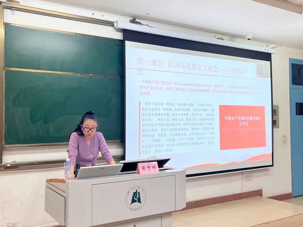 党委副书记、党校副董事长张梦婵向学员们作了首场辅导报告。她用详实的史料向学员们讲授了中国共产党的建党历史和中国共产党名称的由来,介绍了党章、党徽、党旗、入党誓词。用习言习语勉励学员们知党信党入党,铸就伟大的马克思主义信仰。她指出,青年应当珍惜韶华,应当不负伟大时代,积极学习党的理论,端正入党动机。在思想上旗帜鲜明,在学习上守正创新,在工作上模范带头,在生活上严于律己。张书记在报告最后强调:同学们要从政治标准、素质标准、程序标准,积极将共产党员的标准融入到学习、工作和生活当中。