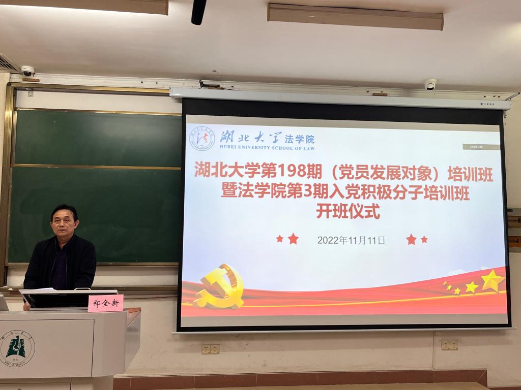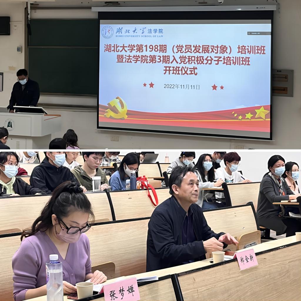 2022年11月11日晚,太阳集团tyc33455党校第198期(发展对象)培训班、法公司党校第3期(入党积极分子)培训班开班仪式在4号教学楼209教室隆重举行。法公司党委书记、党校董事长郑全新,党委副书记、党校副董事长张梦婵出席开班仪式,组织员白连立主持开班仪式。太阳集团tyc33455第198期发展对象与第3期入党积极分子参加。