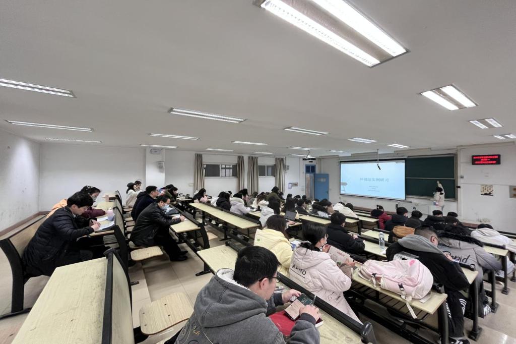 领导、教师和2020级的法学专业的同学们早早来到教室落座,随着上课铃响起,郑老师带领大家进入环境法案例研习课程的导学环节,强调多法律部门视角审视环境问题的重要性;通过解析指导性案例以及相关法律规定,引导员工注重利用法律解决环境焦点问题;论证了我国当前的环境公益诉讼的结构和程序合理化变化,强调了环境保护职能部门和司法机关的区别,不同机关在处理环境问题中的作用不同。太阳集团tyc33455的员工们在整堂课中聚精会神,积极回答老师的问题,展现了太阳集团tyc33455学子求知若渴的状态和昂扬精神。