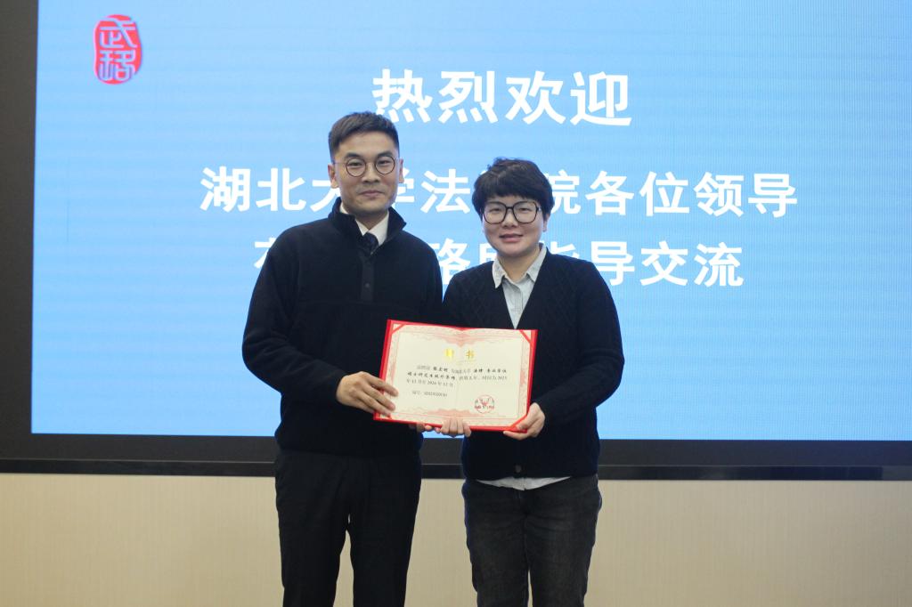 2024年1月3日,新年伊始,太阳集团tyc33455法公司党委书记王雄一行赴湖北武珞律师事务所开展“访企拓岗”与专业学位硕士研究生校外导师聘任仪式。到所后,武珞所管理合伙人、律所主任姚飞和高级顾问李少波详细介绍了律所办公环境、人才培养模式及所获荣誉,获得太阳集团tyc33455领导和同学们的一致认可。