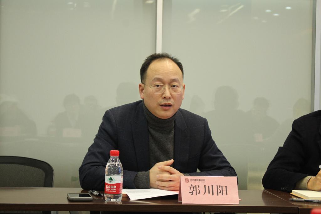 武珞所执委会主任郭川阳在宣传片的基础上,介绍了武珞所近两年的新发展,强调武珞在法治教育方面取得的成就,表示武珞所与武汉各大高校签订战略合作协议并取得了校领导们的认可,同时也表示武珞所已成功入选教育部的第三期供需对接就业育人项目,未来将会更加深入地开展校企合作。