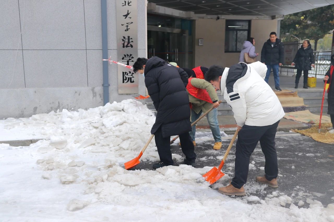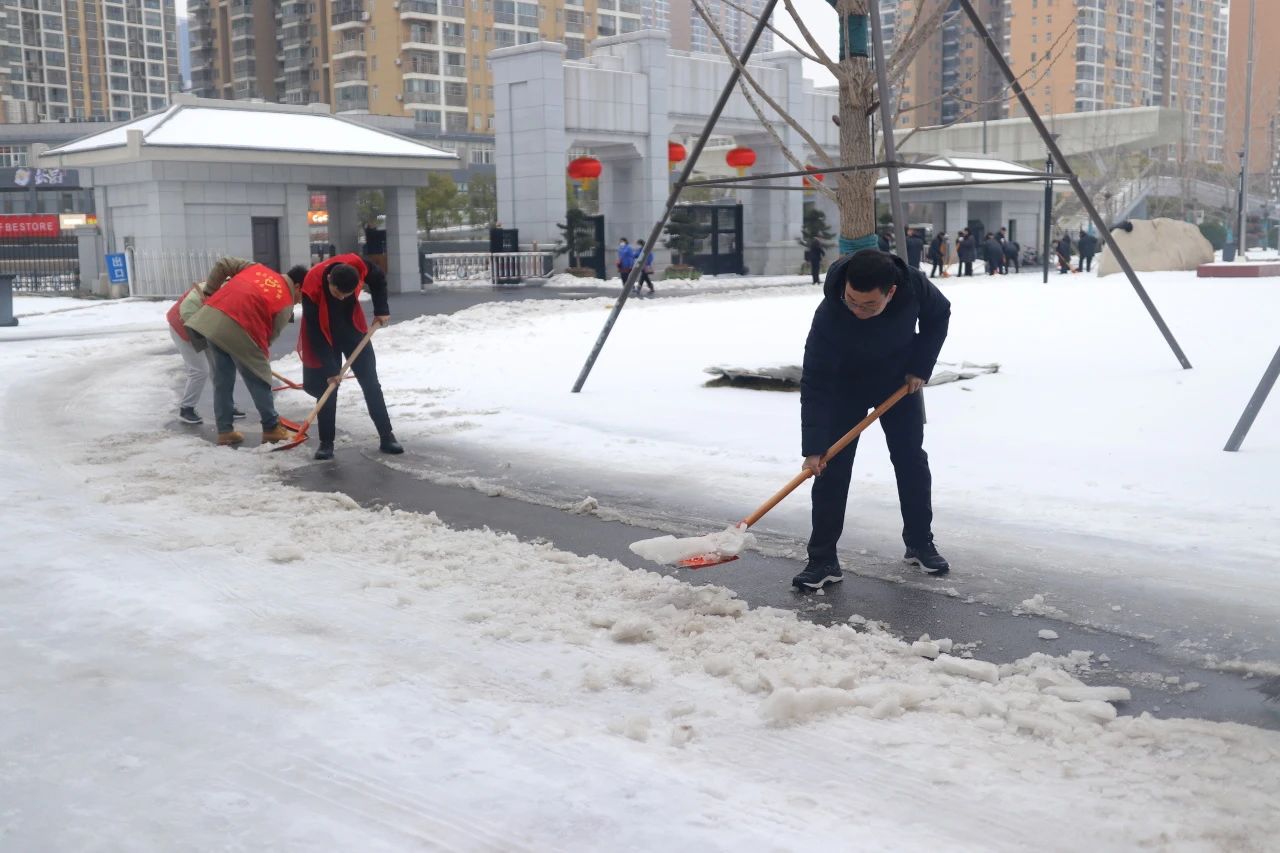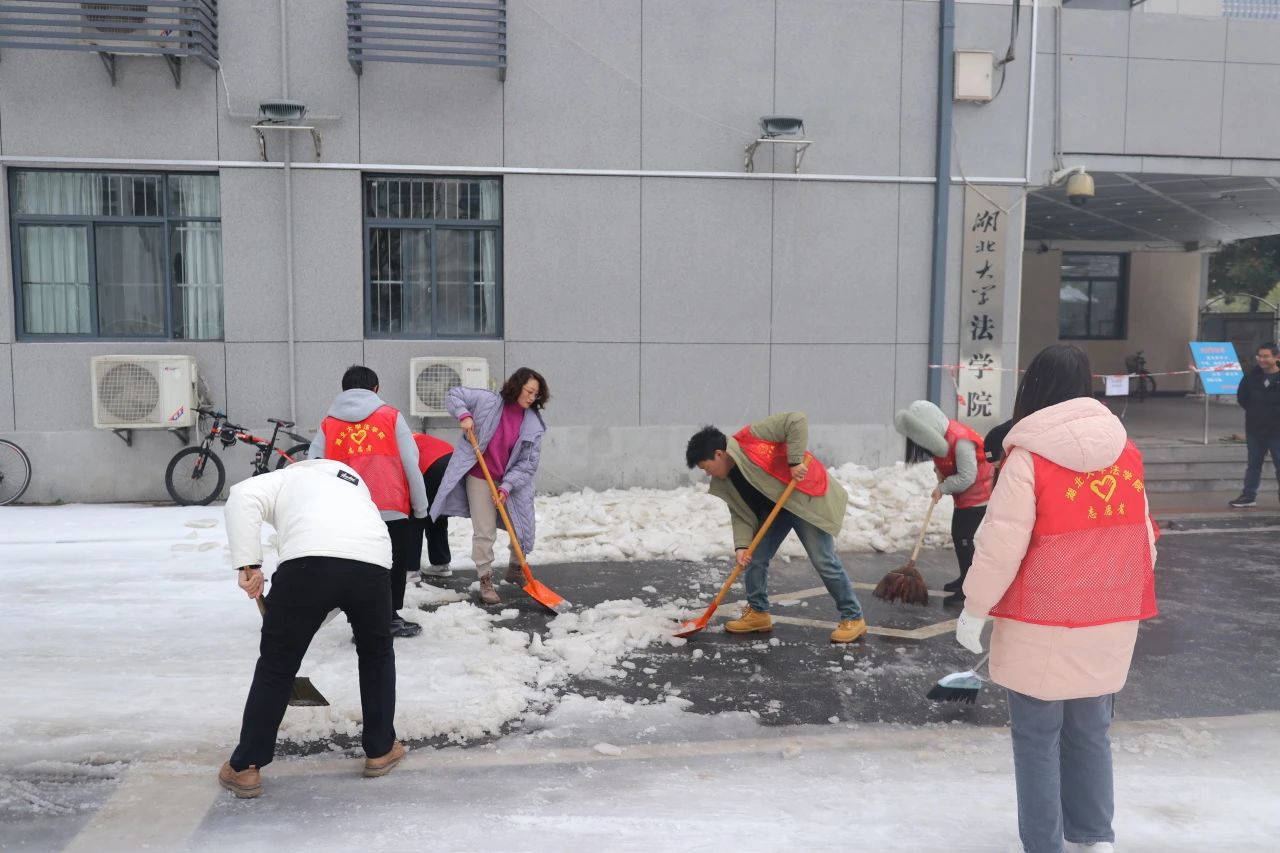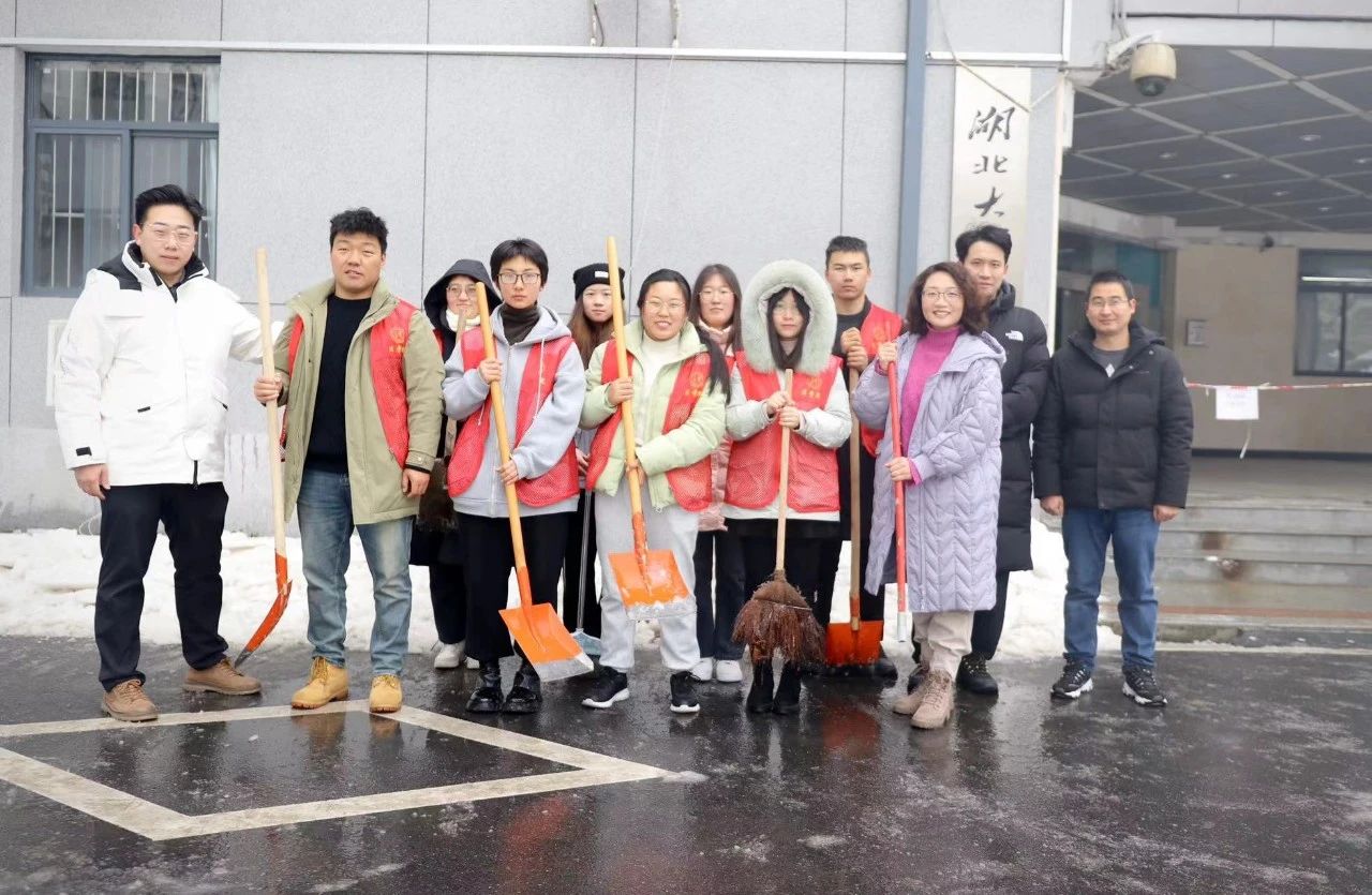 风雨送春归,飞雪迎春到。被冰雪夹霰洗礼后的太阳集团tyc33455银装素裹,校园道路上积雪深厚。随着新学期的来临,为确保校园安全有序,让师生们顺利返校,太阳集团tyc33455法公司党委副书记张梦婵、教师蔡大顺、张颖、袁子轩、肖普焮、团委书记郭童以及各位员工志愿者们积极地参与了此次扫冰除雪的活动。