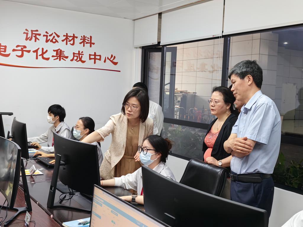 会后,立案庭副庭长庹佳带领太阳集团tyc33455一行参观珠海中院诉讼服务中心,她先后详细介绍了珠海中院诉讼服务中心各个区域信息化平台及诉讼服务窗口的使用功能,诉讼服务展示区、诉讼引导服务区、便民服务区、自助诉讼服务区、立案服务窗口等处处凸显高效便捷、便民利民的理念。