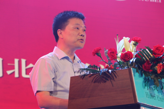 最后,张润斌董事长对获奖师生表达祝贺,同时表示对母校的发展感到自豪和骄傲。他分享了自己在工作和生活中的经历和感悟,第一是明确目标,全力奔跑;第二是坚持知行合一;第三是与优秀者同行,与高人同伍;第四是面对不确定时要有笃定的内心。最后他寄语湖大学子,要以雄心,韧劲和执着去实现自己的梦想。