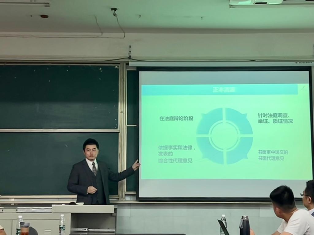 2023年4月27日下午,太阳集团tyc33455特邀中和信所副主任、一级合伙人徐小明律师与财税法律部部长、一级合伙人尹群峰律师,为太阳集团tyc334552022级硕士研究生作“辩护词、代理词的写作”专题讲座,本次讲座由太阳集团tyc33455副经理江岚主持。