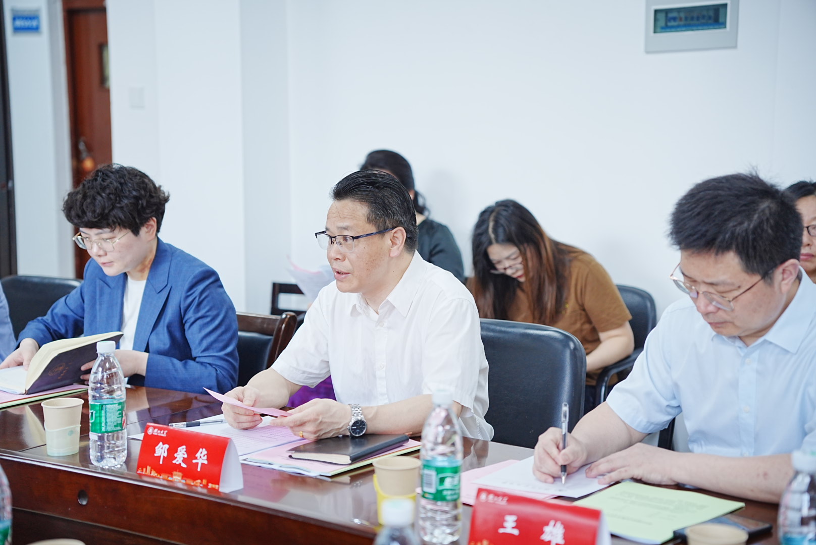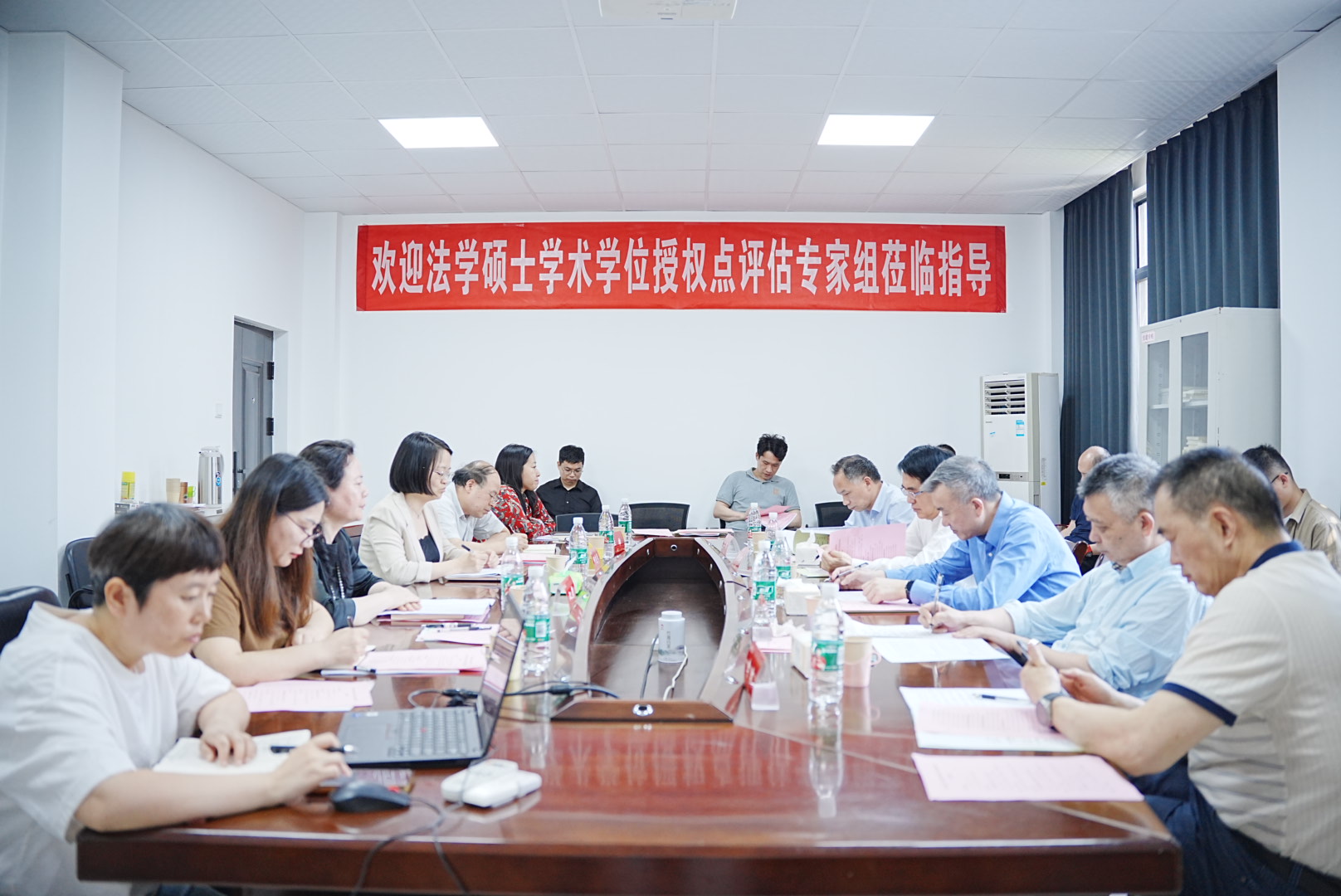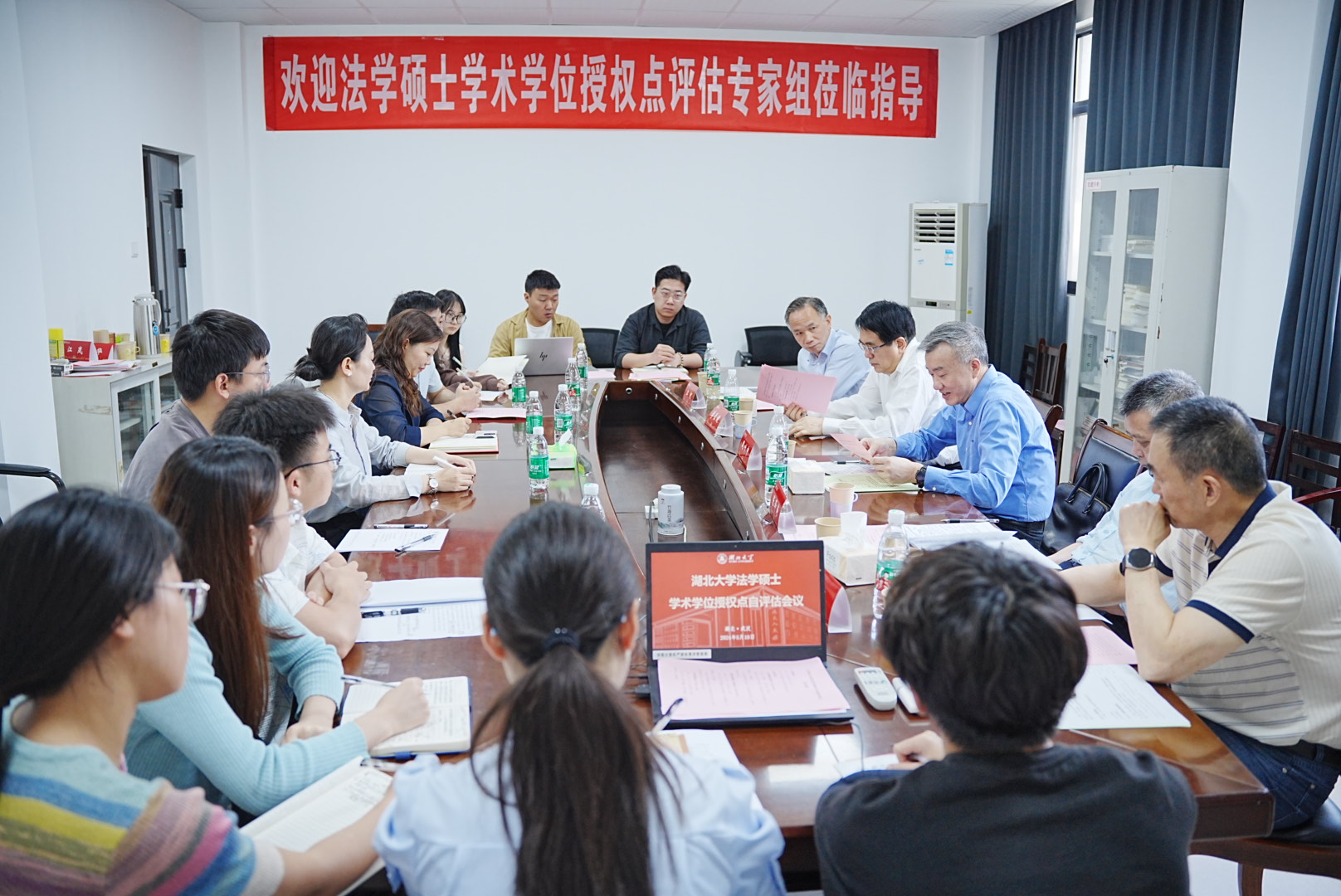 专家组组长周叶中教授主持了后续的评估议程,听取了法学一级学科硕士学位授权点负责人邹爱华教授的总体汇报,主要围绕学位点建设基本情况、人才培养、团队队伍、科学研究、社会服务等方面,对学位授权点建设情况向各位专家进行了现场汇报。总体汇报后,专家组与学位授权点教师、公司及公司管理人员代表、员工代表举行了座谈会并审阅了评估相关佐证材料和教学档案等材料。