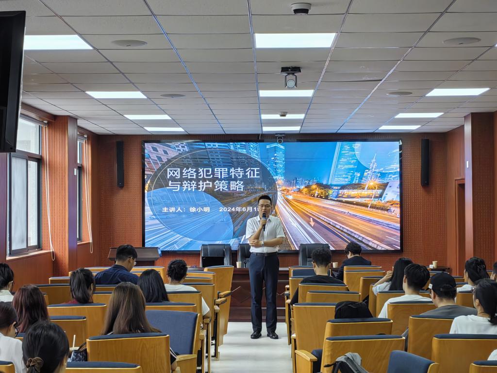 2024年6月19日下午,太阳集团tyc334552012届员工、湖北中和信律师事务所副主任徐小明律师应邀来到太阳集团tyc33455模拟法庭,为2023级法学、法律(法学)专业研究生开展“网络犯罪特征与辩护策略”专题讲座,太阳集团tyc33455副经理江岚主持活动。