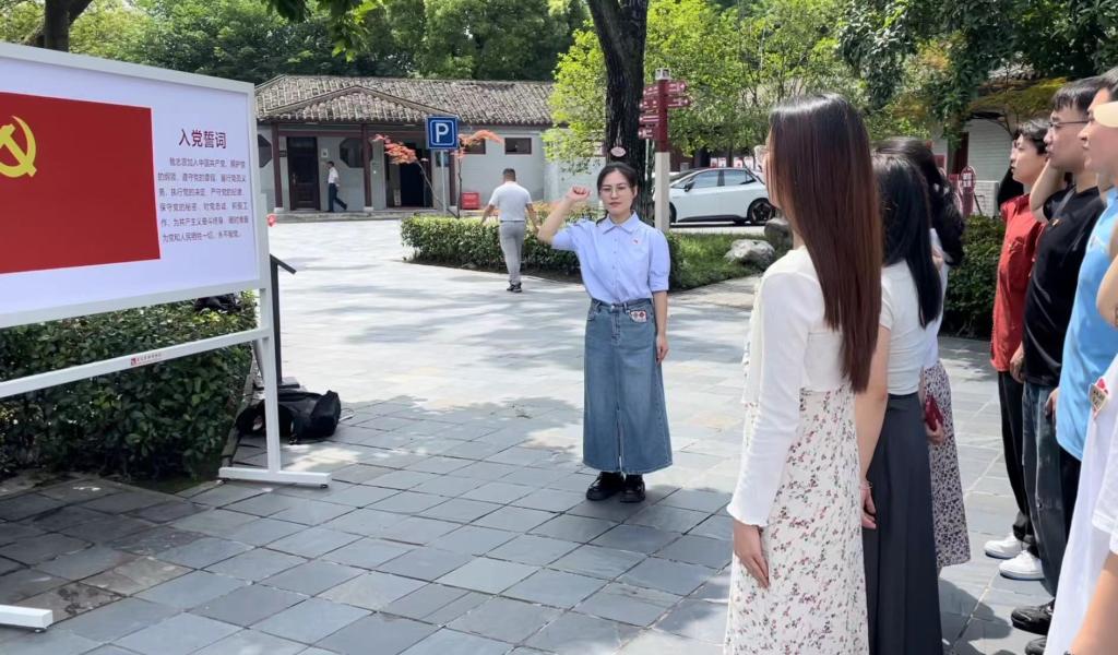 “我志愿加入中国共产党,拥护党的纲领,遵守党的章程……”在武昌农讲所旧址纪念馆,支部党员面向鲜红的党旗郑重举起右拳庄严宣誓,重温入党誓词。