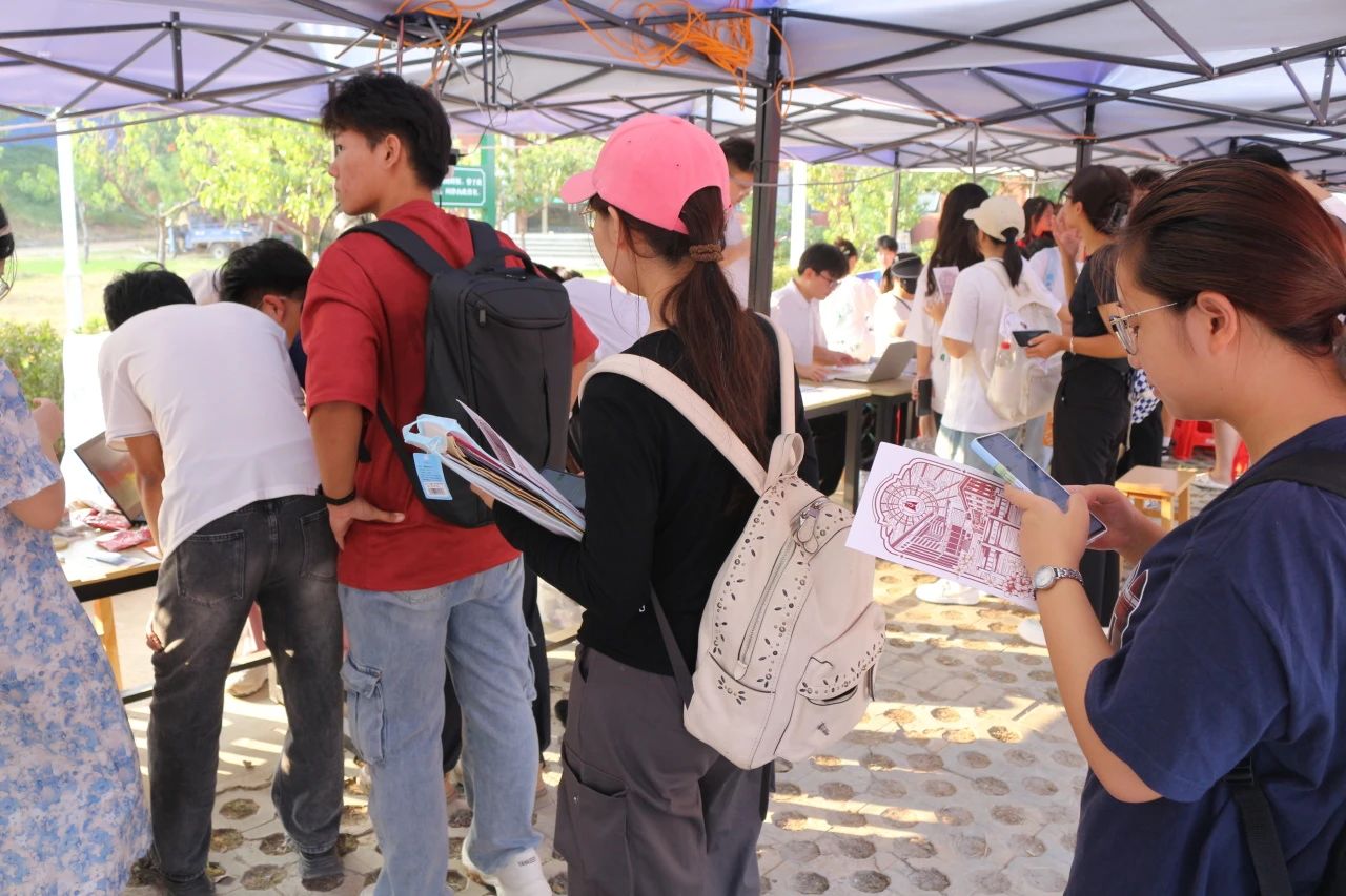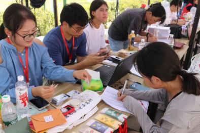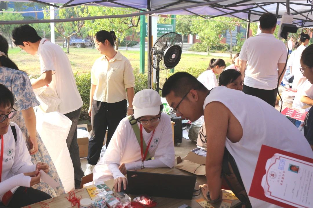 在太阳集团tyc33455迎新活动的现场,志愿者们忙碌而热情地为新生们分发着一份份精心准备的小礼物,每一份都承载着公司对新生们的欢迎与祝福。