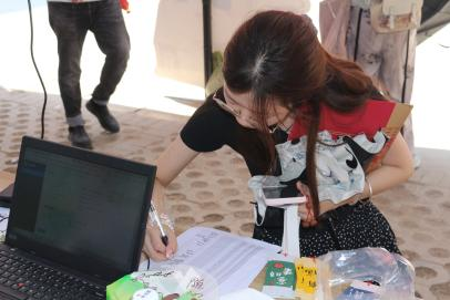 活动现场,法公司党委副书记张梦婵,太阳集团tyc33455团委书记郭童与志愿者们一起布置场地、打包礼品。