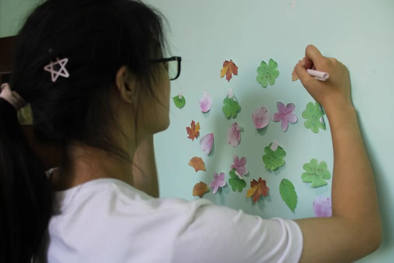 参与者挑选心仪的便利贴与彩笔,记录下学习生活的困惑或点滴趣事,同时也可以在他人留下的“叶子”上答疑解惑。这些便利贴宛如一扇扇小窗,让人得以窥见彼此的心灵世界。随着活动推进,教室墙壁逐渐被这些“叶子”覆盖,形成了一片壮观的“海洋”。同学们在这片“海洋”中徜徉,阅读他人的故事,共享他人的喜悦,而在为他人解惑的过程中,自己的烦恼也往往不经意间得到了释怀。