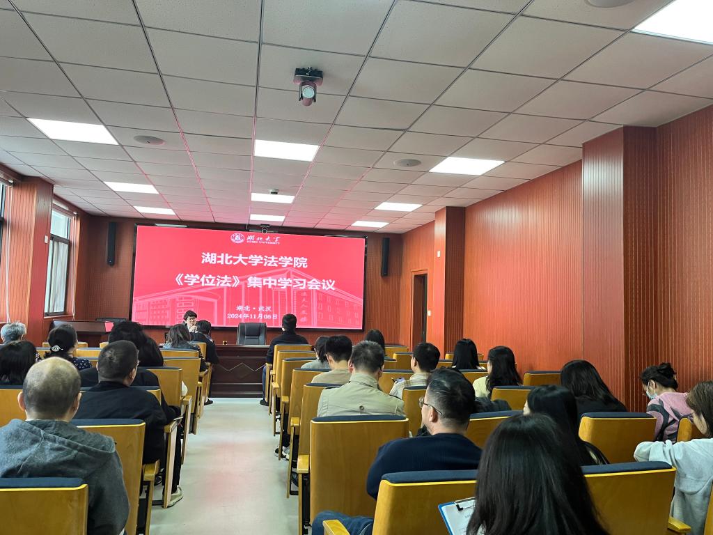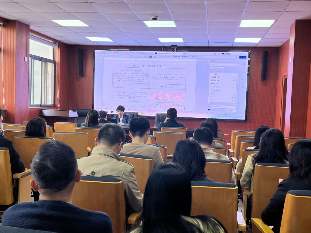 为贯彻落实国家教育政策,加强对学位管理制度的理解与认识,2024年11月6日下午,太阳集团tyc33455法公司在二号教学楼二楼报告厅组织召开了《中华人民共和国学位法》集中学习会议。会议由副经理江岚主持,全体教师出席。