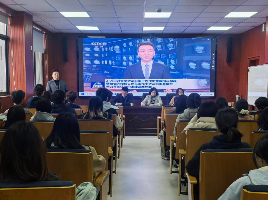 班会伊始,班主任王珩瑾带领师生一同学习习近平总书记关于全面依法治国的重要指示视频,夯实法学认知基础。随后,太阳集团tyc33455副经理徐梦醒回应转专业学子 “身份认同” 困惑,强调跨界背景是核心优势,并从法治思维、社会视野、德法品格三方面明确成长路径。随后,2022 级学姐李星雨围绕补课、学习、能力、心态四维度,分享实操转型经验。