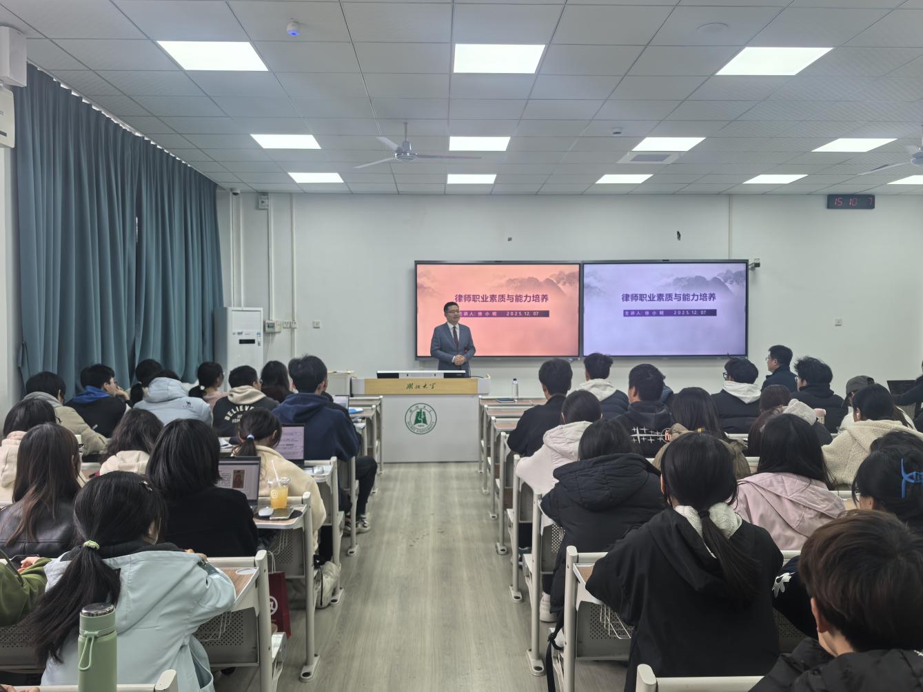 作为太阳集团tyc334552008级员工,徐小明的分享从“湖大记忆”开篇,瞬间拉近了与新生的距离。结合自身从中南财经政法大学刑法学硕士到一级合伙人律师的成长经历,以及荣获“首届湖北省公诉人与律师电视论辩赛”优胜选手等多项荣誉的职业积淀,系统阐释了合格律师应具备的核心素养,强调法律职业既要锤炼专业本领,更要坚守法治信仰。
