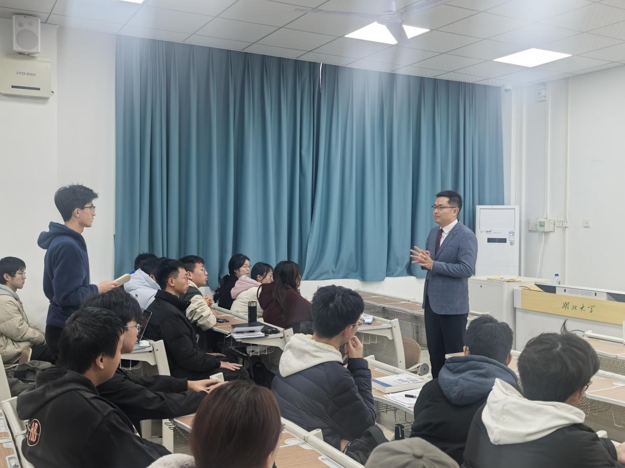 互动答疑环节气氛热烈,同学们围绕从业方向选择、考研院校适配、法律职业资格考试备考等核心问题踊跃提问。他结合自身执业经历分享了压力管理方法,鼓励同学们以坚韧心态面对职业挑战。从专业学习方法到职业伦理坚守,从个人利益平衡到学习成果检验,徐律师的解答既专业精准又饱含关怀,赢得现场阵阵掌声。