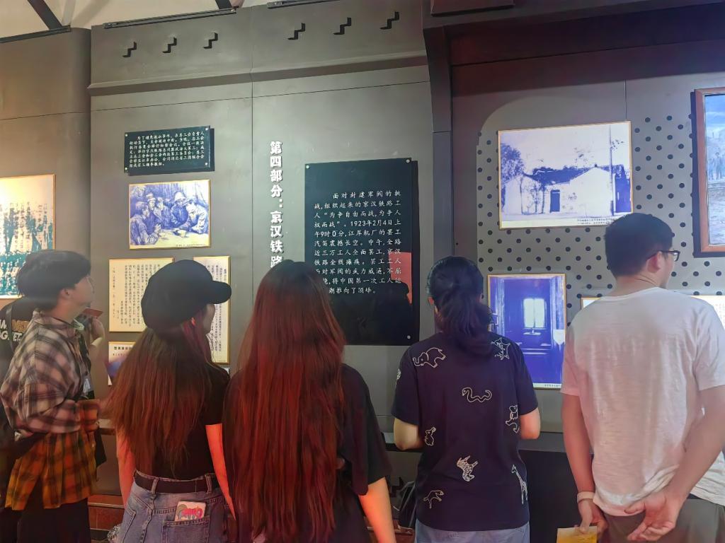 支部党员走进纪念馆,穿梭于一幅幅珍贵的历史图片与实物展品之间,仿佛穿越时空,亲身感受到了京汉铁路大罢工时期工人阶级的英勇与坚韧。通过参观纪念馆,支部党员深入了解了京汉铁路大罢工的历史背景、经过及其深远影响。那段工人阶级为争取自身权益而英勇斗争的历史,让在场的每一位同学都深受触动。大家纷纷表示,这次参观不仅让他们对党的历史有了更加全面和深入的了解,对那段波澜壮阔的历史有了更加直观和深刻的理解,更激发了大家强烈的爱国情怀和历史使命感。支部党员查文安参观完表示,“我深切地感受到先烈们为争取人民的安宁和权利奋斗的精神。也让我我体会到现在的幸福生活来之不易,是许多革命前辈用生命和鲜血换来的,应加倍珍惜!”