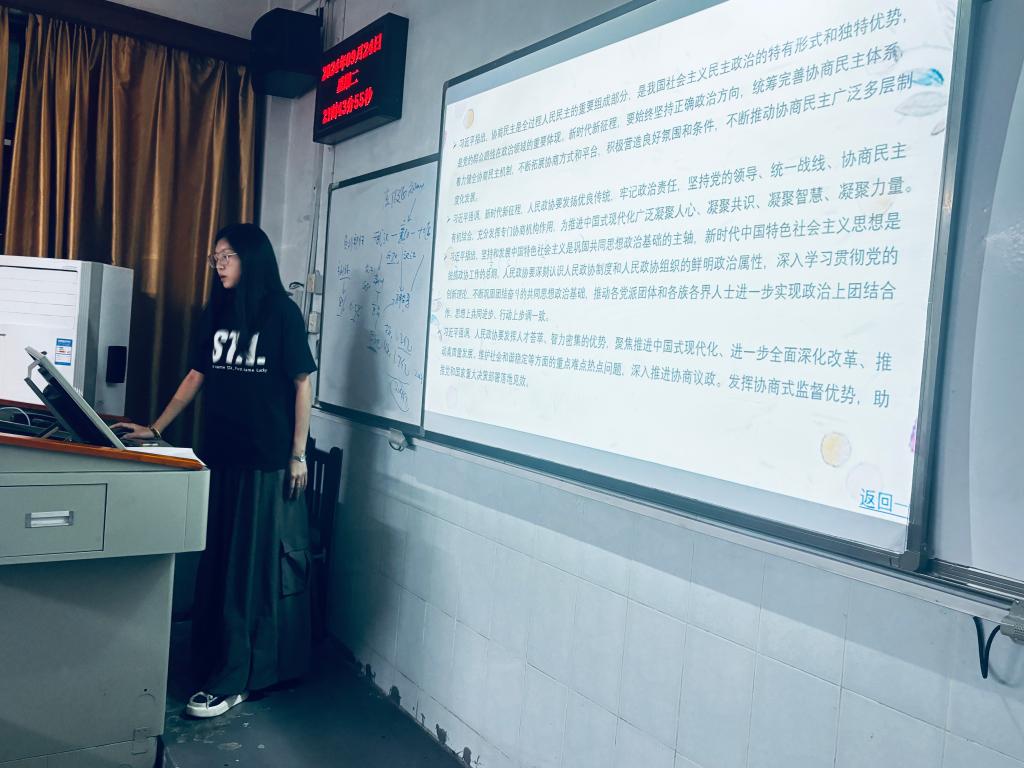 9月主题党日活动主要为一、学习《习近平:在庆祝中国人民政治协商会议成立75周年大会上的讲话、二、学习《党史学习教育工作条例》本月主题活动由研究生第四党支部书记陈佩雯开展线下讲课,第六党支部13名成员参与。