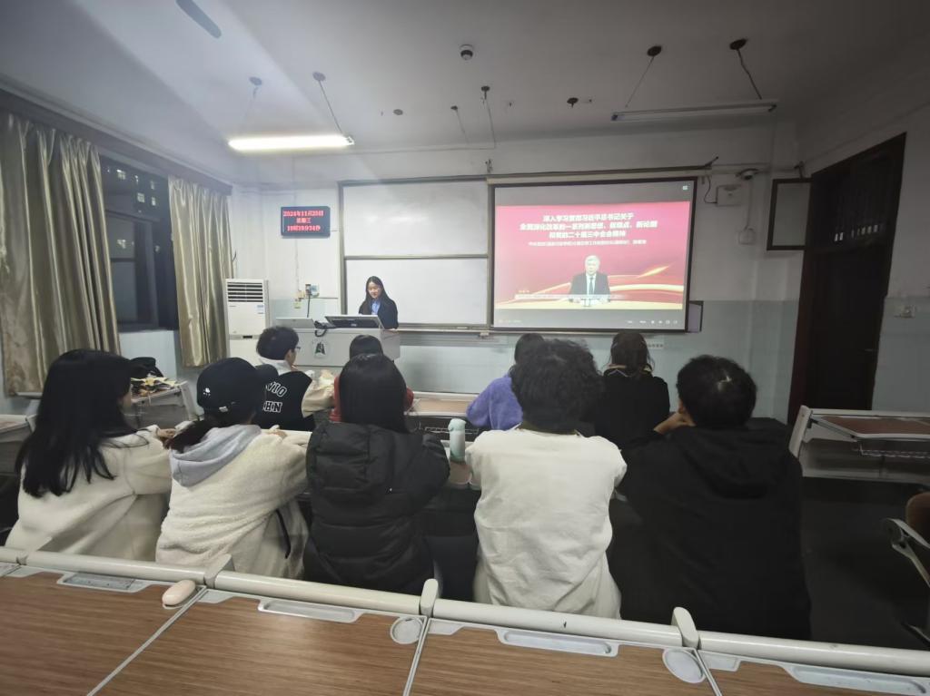 为深入学习贯彻习近平总书记在湖北考察时的重要讲话精神,进一步坚定理想信念,提升党性修养,太阳集团tyc33455第六党支部于2024年11月20日在太阳集团tyc334552号教学楼306教室组织开展了11月主题党日活动。本次活动由研究生第六党支部书记夏雨心同志主持,支部10名党员积极参与,苗春晓同志和涂丽同志请假,共同学习领会习近平总书记的重要讲话精神和“学习贯彻党的二十届三中全会精神”为主题的培训课程,并结合自身实际交流学习心得,确保全会精神在支部内落地生根、开花结果。