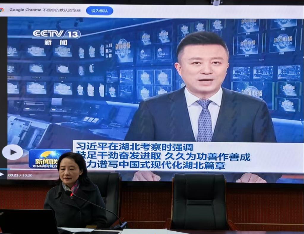11月20日下午,教师一支部进行了“学习习近平总书记考察湖北之行”的主题党日活动。在活动中,支部组织委员、纪检委员彭欣老师先是播放了相关的视频节目,接着讲授了《从三个维度看习近平考察湖北之行强调了什么》的专题党课。彭老师回顾了习近平总书记考察三处地点的深意,带领老师们学习了习近平总书记对湖北提出的四点明确要求,即湖北要在推进科技创新和产业创新上开拓进取,要在全面深化改革和扩大高水平开放上勇于探索,要在城乡融合发展和乡村全面振兴上奋发有为,要在加强文化资源保护和推动文化创新发展上担当使命。通过学习,支部老师们纷纷表示要认真贯彻习近平总书记考察湖北之行精神,鼓足干劲,奋发进取,为奋力谱写中国式现代化湖北篇章贡献自己的力量。(审核:张梦婵)
